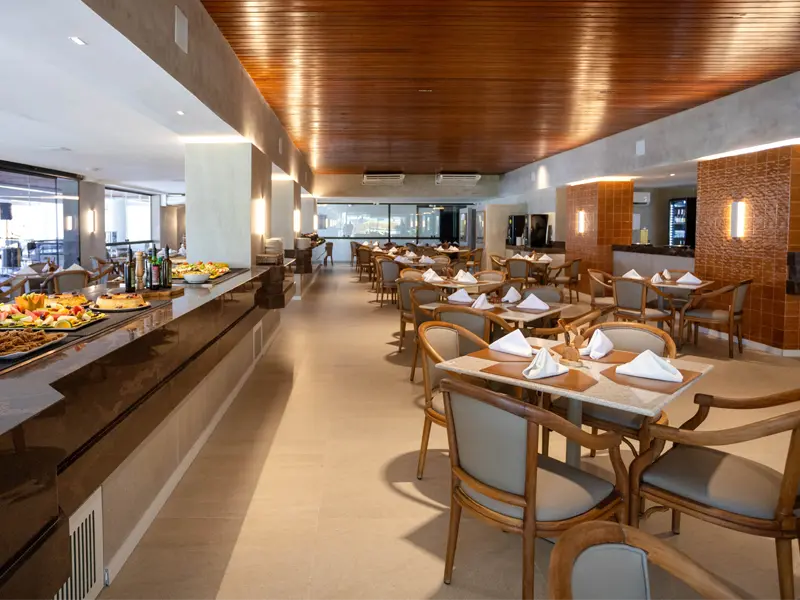 Um hotel com todo conforto de um empreendimento moderno, com áreas de lazer e de eventos. Serviços como Room Service até as 22 horas, conexão Wi-Fi, bar piscina, academia, quadra de tênis, sauna a vapor, baby copa, kids club, playground, além de toda infraestrutura para melhor atender ao seu evento, são suas marcas registradas.
